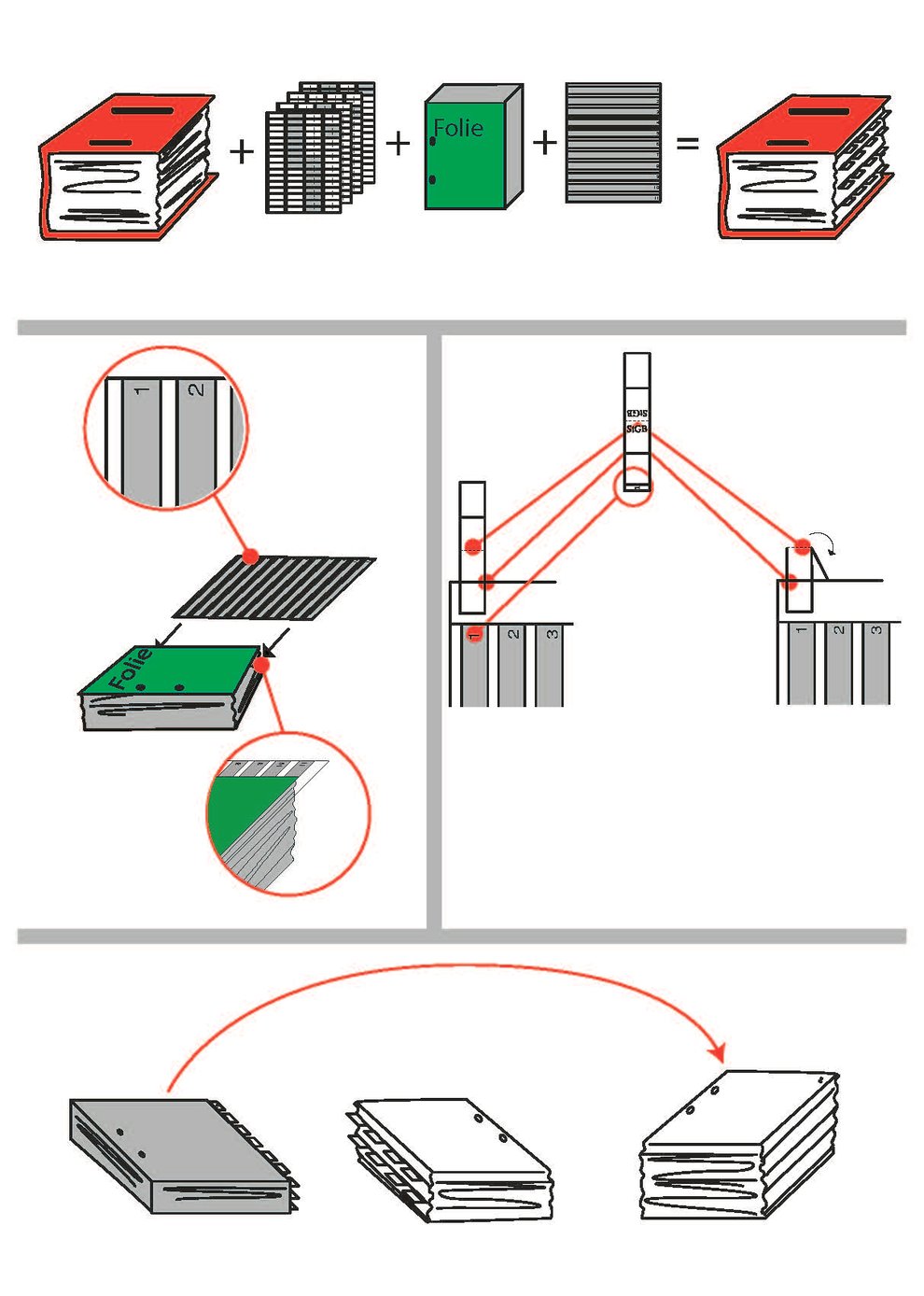 Die DürckheimRegister-Folien werden in Loseblattwerke eingeheftet und mit den DürckheimRegister-Tabs versehen.