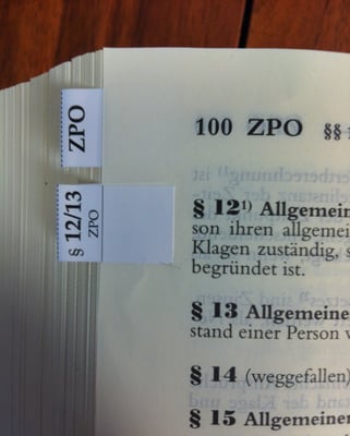 Der Registerklebstoff ist laut Hersteller ablösbar. So können nach dem Einsortieren der Ergänzungslieferungen die Register vorsichtig entfernt und erneut eingefügt werden. Es können Klebereste an den Seiten verbleiben. In der Praxis hat sich die Markierung der Gesetzesanfänge (z.B. “BGB”) auf der Folgeseite bewährt. Die erste Seite der Gesetze wird im Rahmen der Ergänzungslieferungen meist ausgetauscht.