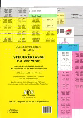 mit Stichworten für deine Steuergesetze-Richtlinien und Erlasse AO, EStG, ErbStG, UStG usw + BGB-HGB-GmbHG, stets aktuelle Auflagen, ca. 683 Aufkl. + 700 Folien