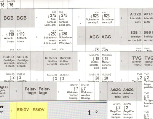 (BGB, AGG, KSchG, BBiG, SGB, BEEG, BetrVG, ArbGG usw.)
