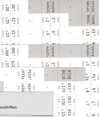 Zur Markierung der wichtigsten §§ in deinem BGB, AGG, KSchG, BBiG, SGB, BEEG, BetrVG, ArbGG usw. mit Stichworten aus der gesetzlichen Überschrift.