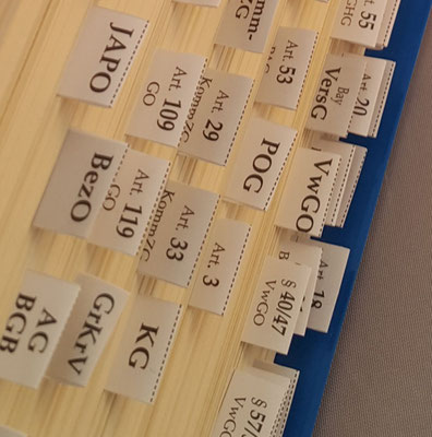 122 Registeretiketten zur Markierung der wichtigsten Gesetze, Artikel und Paragrafen in LV, VerfGHG, GG, LVwVfG, GemO, PolG, LBO