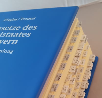 Markiert die wichtigsten Gesetze, Artikel und Paragrafen im ZIEGLER TREMEL: BayBO, BezO, GO, KommZG, LSTVG, LKrO, BV, VfGHG, VwGO, VwVfG, PAG