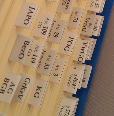 122 Registeretiketten zur Markierung der wichtigsten Gesetze, Artikel und Paragrafen in LV, VerfGHG, GG, LVwVfG, GemO, PolG, LBO und viele mehr. Jahresaktuelle Auflagen. Mit Schablone.