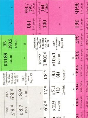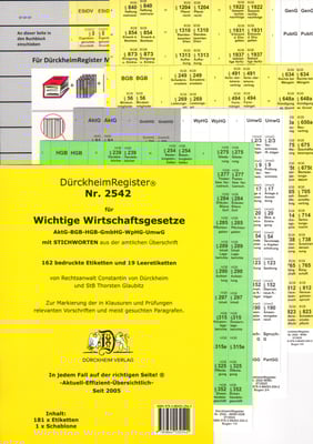 BGB, AktG, HGB, GmbHG, UmwG nur §§ und Gesetzesbezeichnungen ohne Stichworte, ca. 162 bedruckte und 22 freie Etiketten mit Schablone