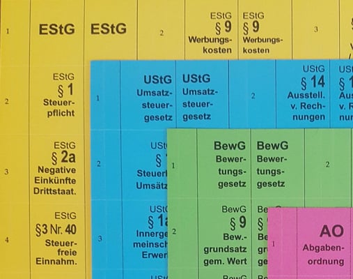 EStG, LStG, BewG, UStG, GrEStG, AO
