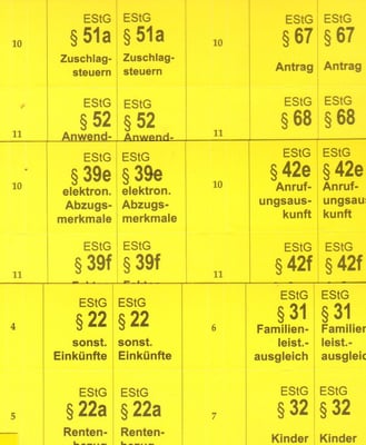 Sämtliche Paragrafen des Einkommensteuergesetzes und der Durchführungsverodnung mit Stichworten aus der amtlichen Überschrift.