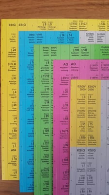Zahlen und Paragrafen der wichtigsten Vorschriften OHNE Stichworte. Zur Befestigung an Buchseiten oder Folien.