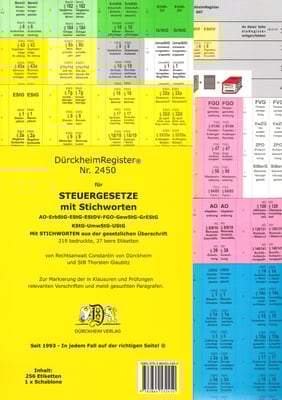 mit Stichworten für deine Steuergesetze-Richtlinien und Erlasse AO, EStG, ErbStG, UStG usw + BGB-HGB-GmbHG, stets aktuelle Auflagen, ca. 683 Aufkl. + 700 Folien